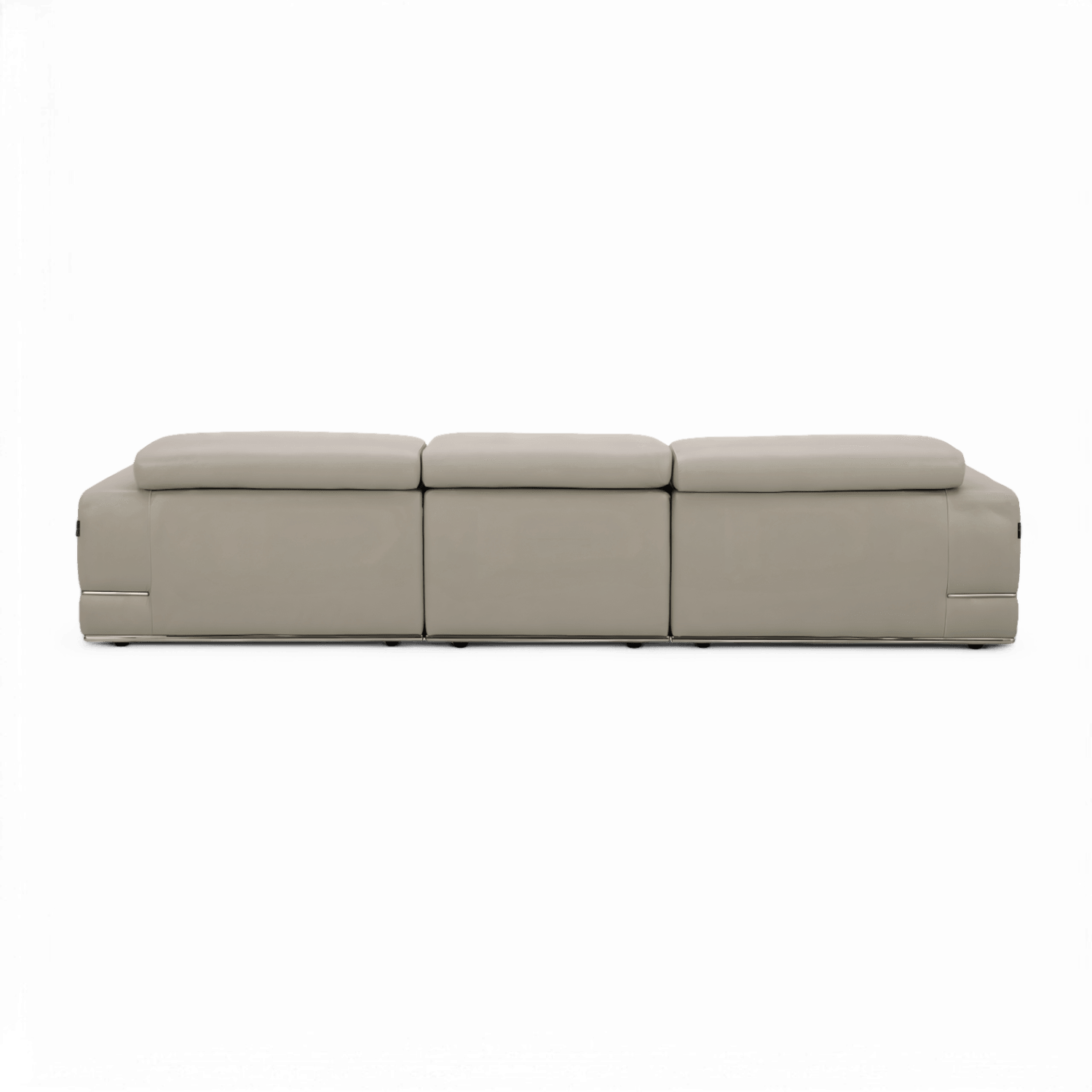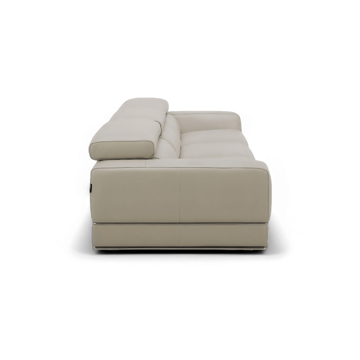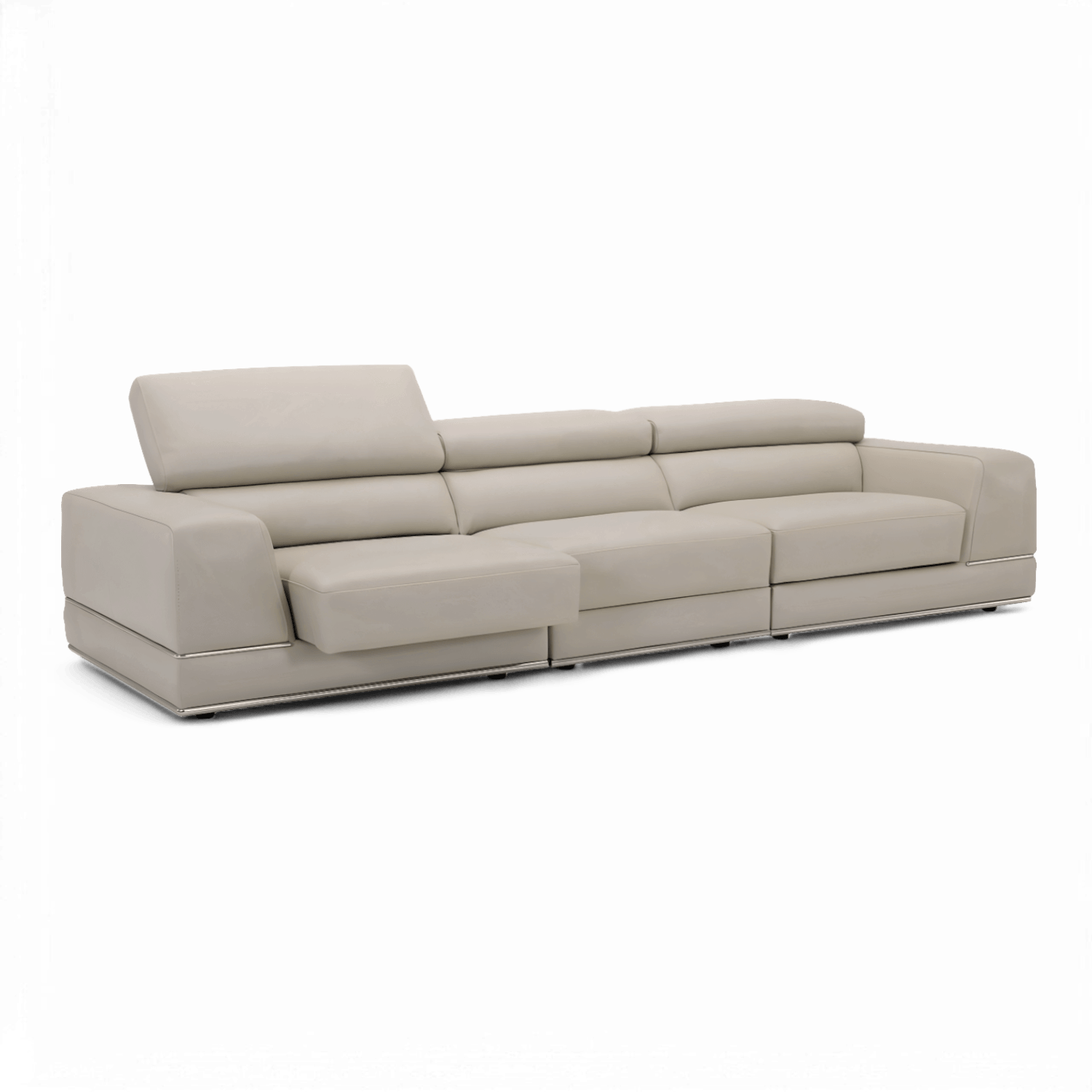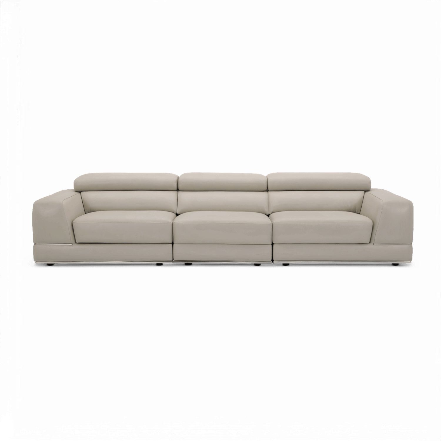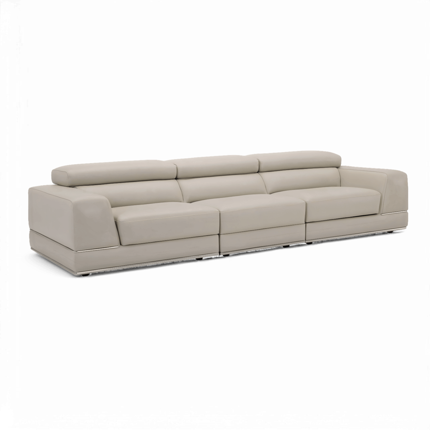 Indulge in luxury and style with the Amadeo 3-Piece Modular Sofa in Light Gray, where sophistication meets comfort in perfect harmony. Wrapped in sumptuous Italian leather upholstery, the Amadeo sofa boasts a timeless appeal, offering both durability and unmatched comfort. Enveloped in sumptuous light gray leather upholstery, the Amadeo sofa exudes a refined charm while offering a soft and inviting feel. Enhancing your comfort further, the Amadeo sofa comes equipped with manually adjustable headrest and seat slider on the end seats, allowing you to customize your seating experience to your preference.