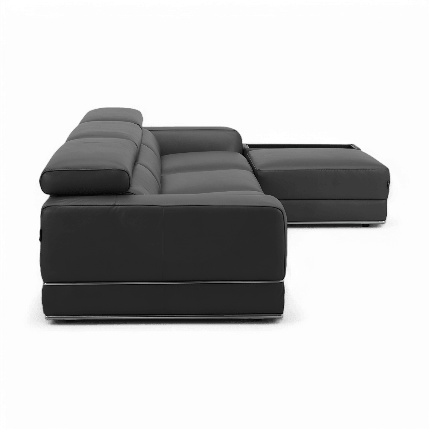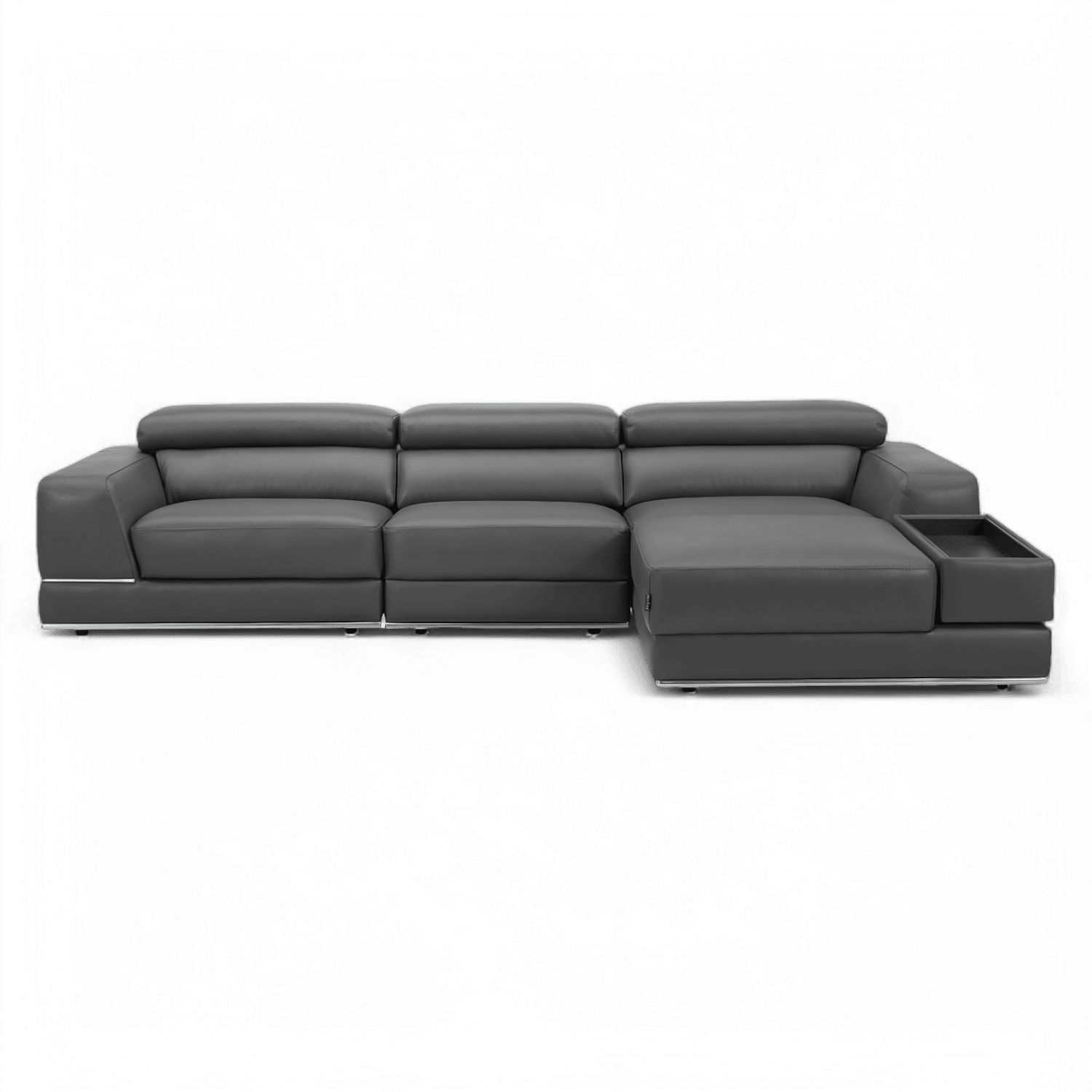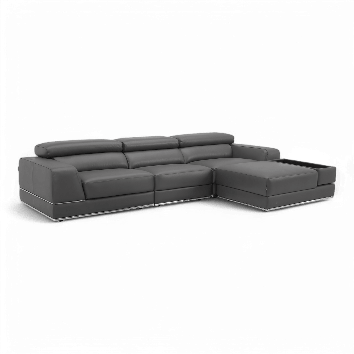 Indulge in luxury and style with the Amadeo Modular Sectional Sofa in Elephant Gray, where sophistication meets comfort in perfect harmony. Wrapped in sumptuous Italian leather upholstery, the Amadeo sofa boasts a timeless appeal, offering both durability and unmatched comfort. Wrapped in plush dark gray leather upholstery, the Amadeo sofa exudes a sense of understated elegance. The rich hue adds depth and character to the room, making a bold statement in any interior setting. Enhancing your comfort further, the Amadeo sofa comes equipped with manually adjustable headrest and seat slider on the end seats, allowing you to customize your seating experience to your preference.