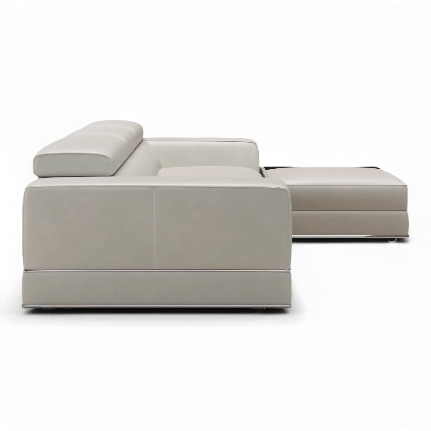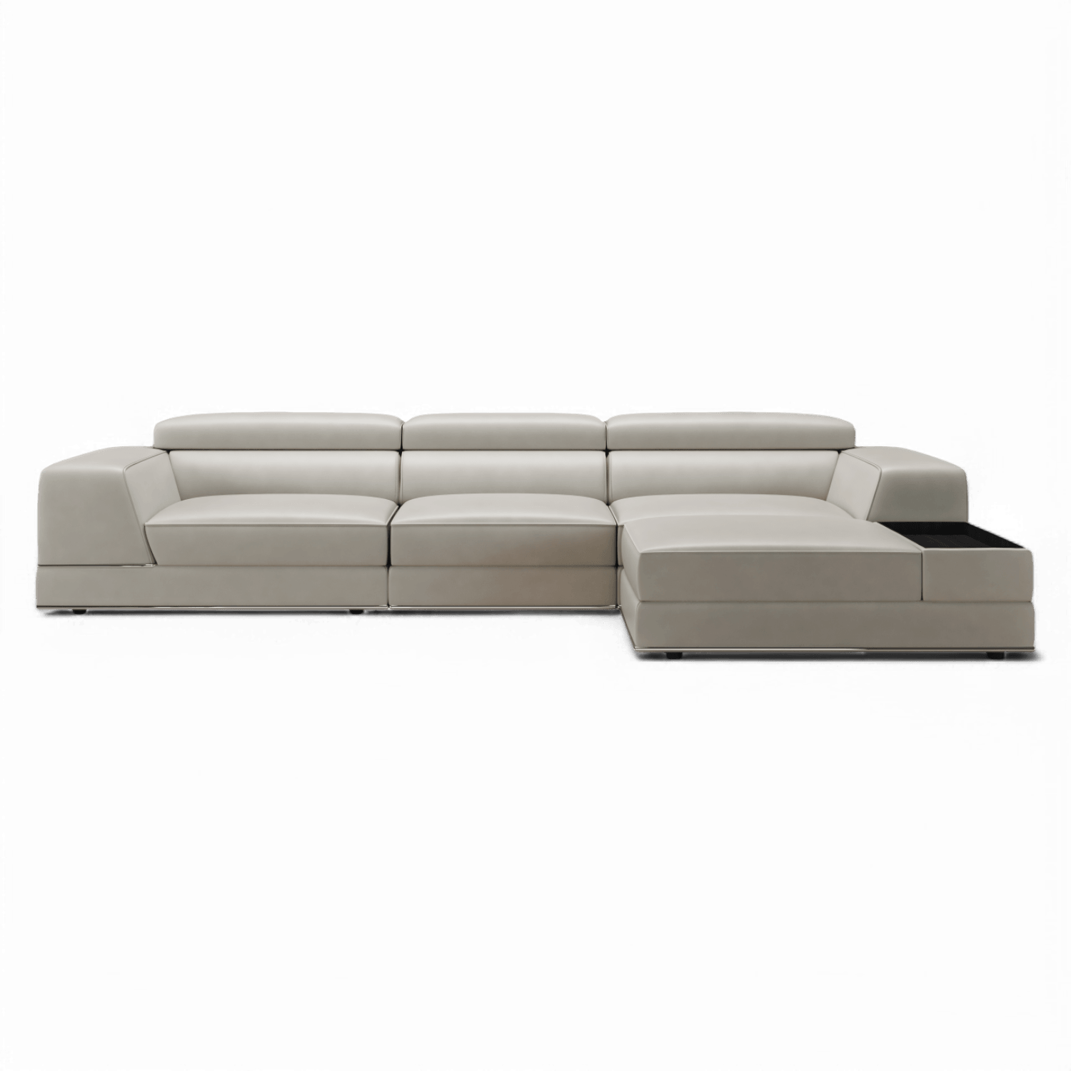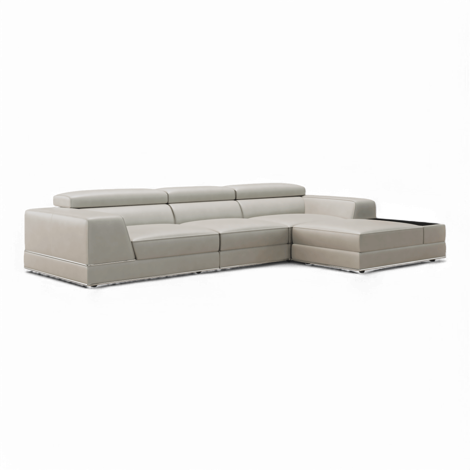 Indulge in luxury and style with the Amadeo Modular Sectional Sofa in Light Gray, where sophistication meets comfort in perfect harmony. Wrapped in sumptuous Italian leather upholstery, the Amadeo sofa boasts a timeless appeal, offering both durability and unmatched comfort. Enveloped in sumptuous light gray leather upholstery, the Amadeo sofa exudes a refined charm while offering a soft and inviting feel. Enhancing your comfort further, the Amadeo sofa comes equipped with manually adjustable headrest and seat slider on the end seats, allowing you to customize your seating experience to your preference.