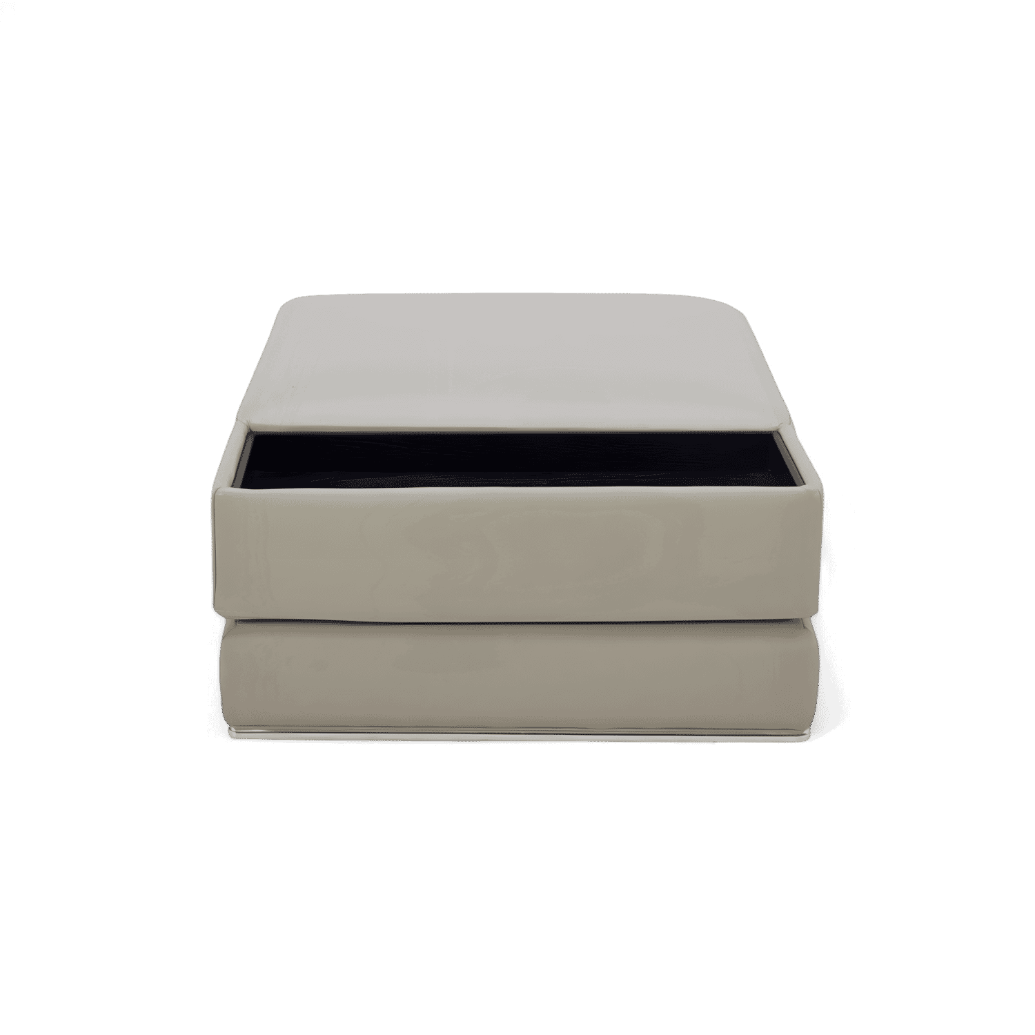 The Amadeo Ottoman in Light Gray is a perfect complement to the Amadeo Modular Sectional Sofa, showcasing a seamless blend of luxury and functionality. Upholstered in premium Italian leather and plush cushioning, this ottoman exudes sophistication and timeless elegance. The Amadeo Ottoman also features a top storage compartment, providing a stylish solution for keeping your living space tidy and organized. Whether used as a footrest, additional seating, or a chic coffee table alternative, the Amadeo Ottoman enhances any living space with its refined design and versatile functionality.