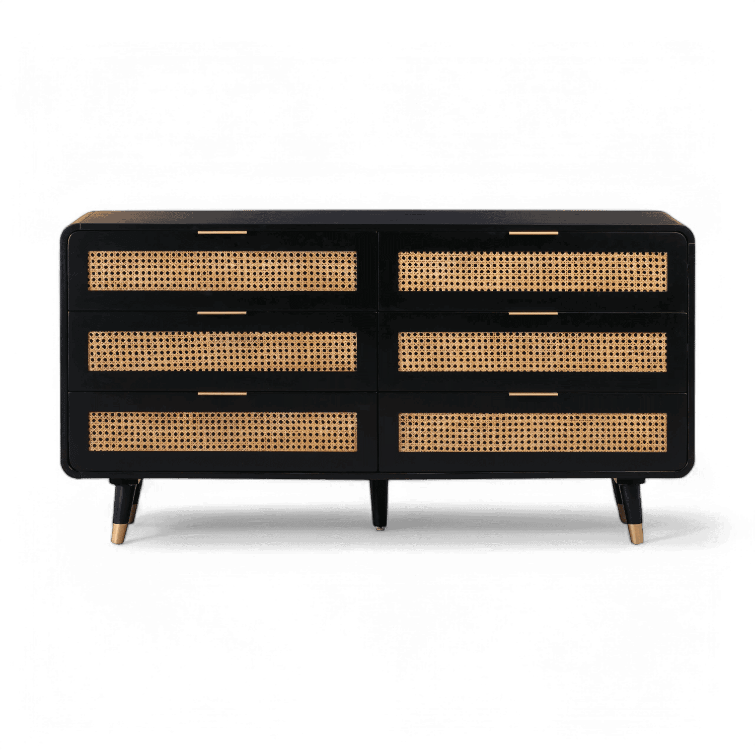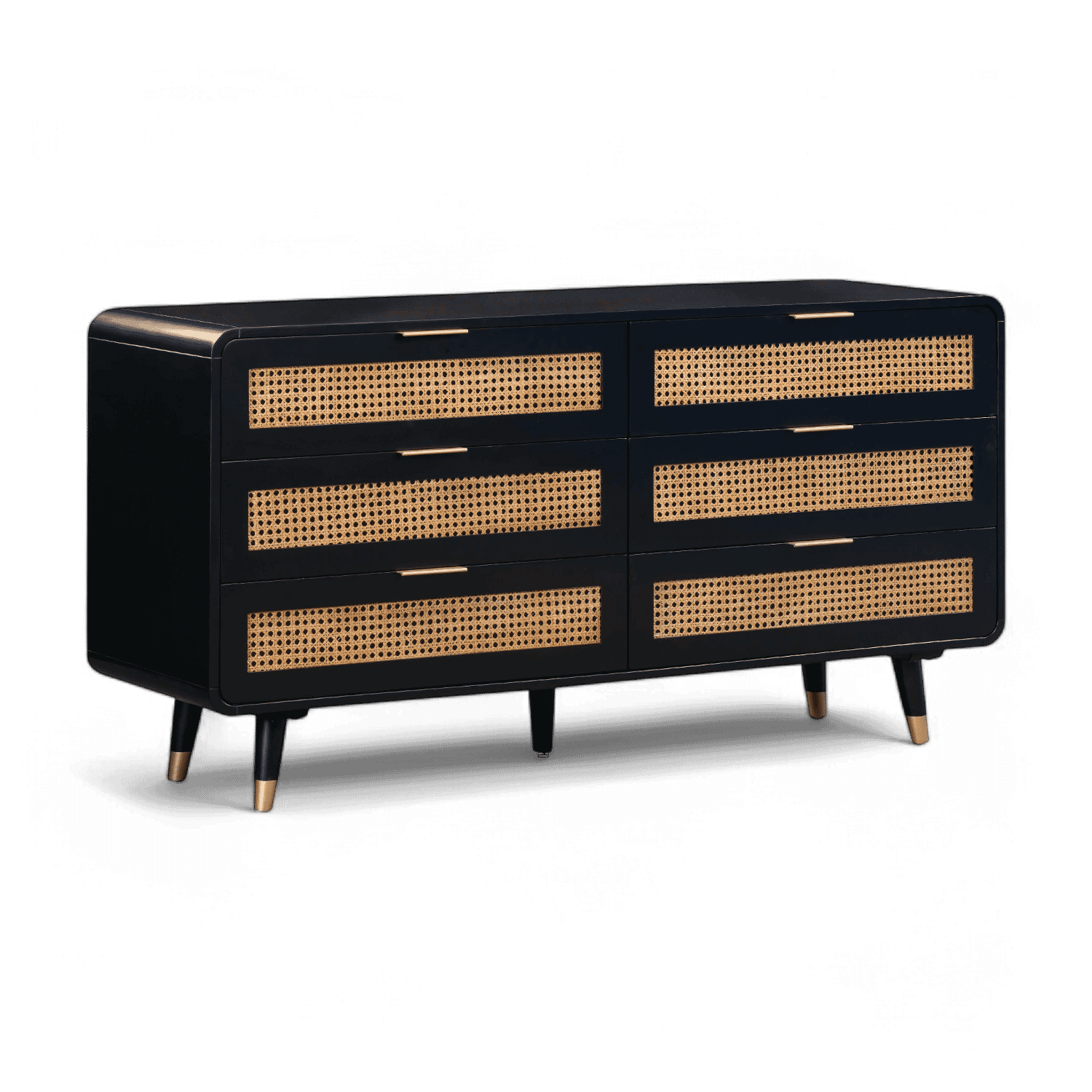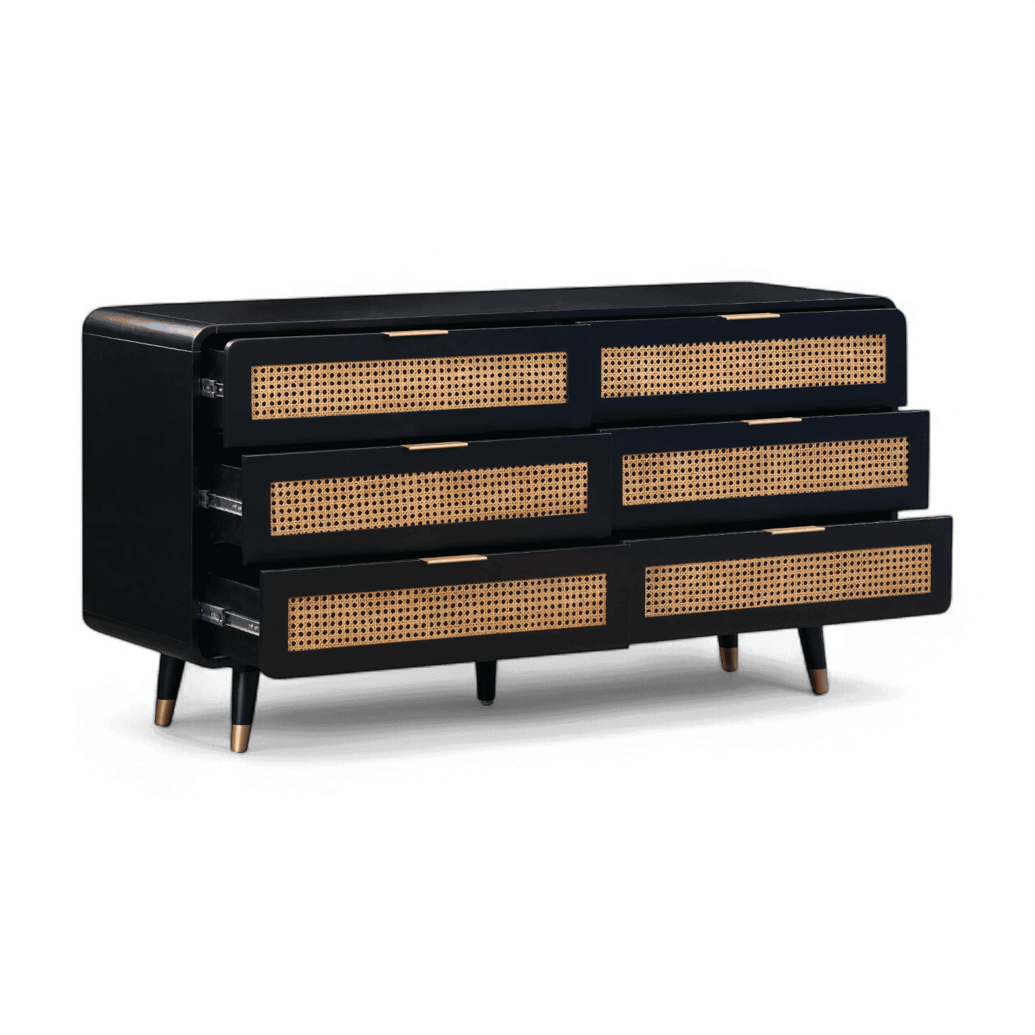 Acacia,MDF,Metal,Natural Cane | Six spacious drawers | Drawer dimensions: 28.9W x 15D x 5.1H | Mid-Century Design