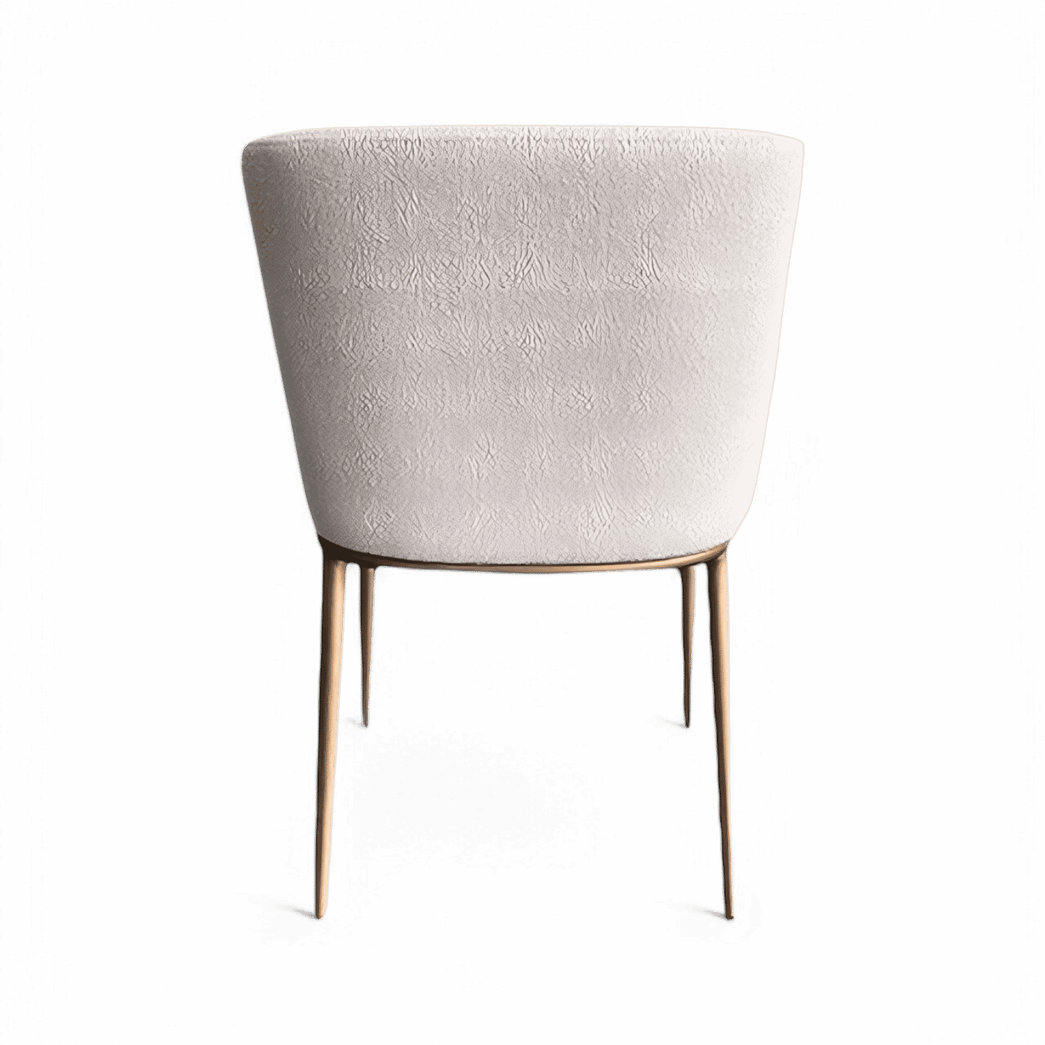 The Jade Dining Chair in White Boucle is a stylish blend of modern elegance and cozy comfort. Upholstered in luxurious white boucle fabric, it offers a soft, textured finish that enhances its inviting appeal. The chair features a rounded back and gently sloped arms, creating a fluid, sophisticated silhouette that complements various dining room aesthetics. The brushed brass-colored legs provide a sleek, metallic contrast, adding a touch of glamour and stability to the design. Perfect for elevating any dining space, the Jade Dining Chair combines timeless style with functional comfort.