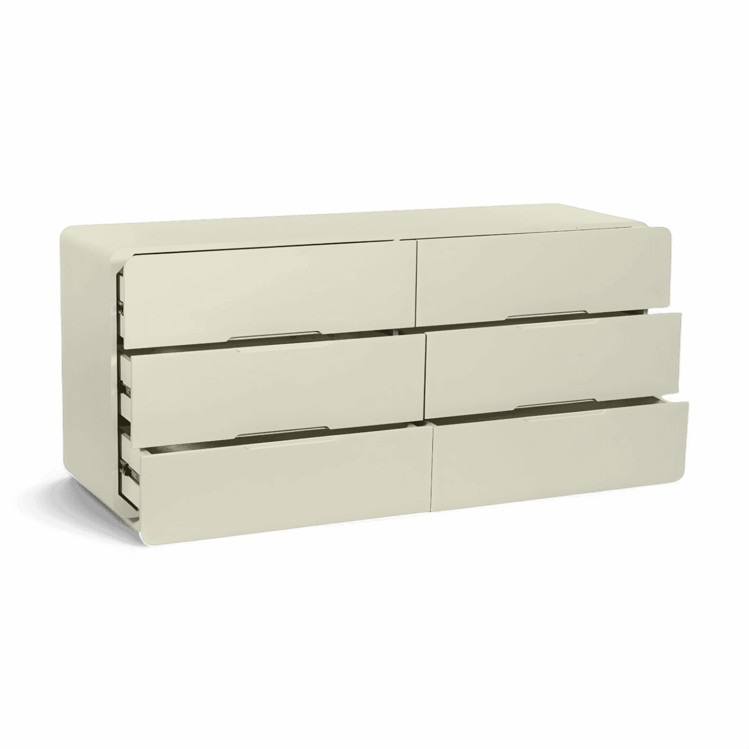 Elevate your bedroom with the harmonious balance of contemporary aesthetics and classic charm with the Lioh Dresser in Alabaster. With its rounded edges and soft-close drawers, it's an elegant addition that not only complements your interior but also simplifies your daily life.