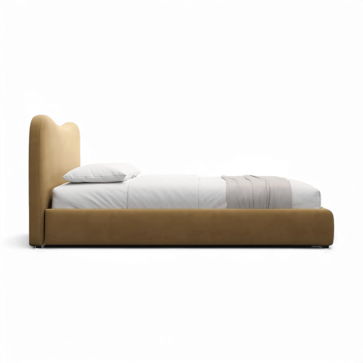 The Nido Bed in Camel Velvet is the epitome of modern elegance and comfort. This exquisite bed frame features a gracefully curved, padded headboard that invites relaxation, while its padded side rails add a seamless touch of luxury. Fully upholstered in a rich, camel velvet fabric, the Nido Bed exudes a timeless sophistication that effortlessly complements any bedroom decor. Its thoughtful design and premium materials ensure both style and comfort, making it the perfect centerpiece for your serene retreat.