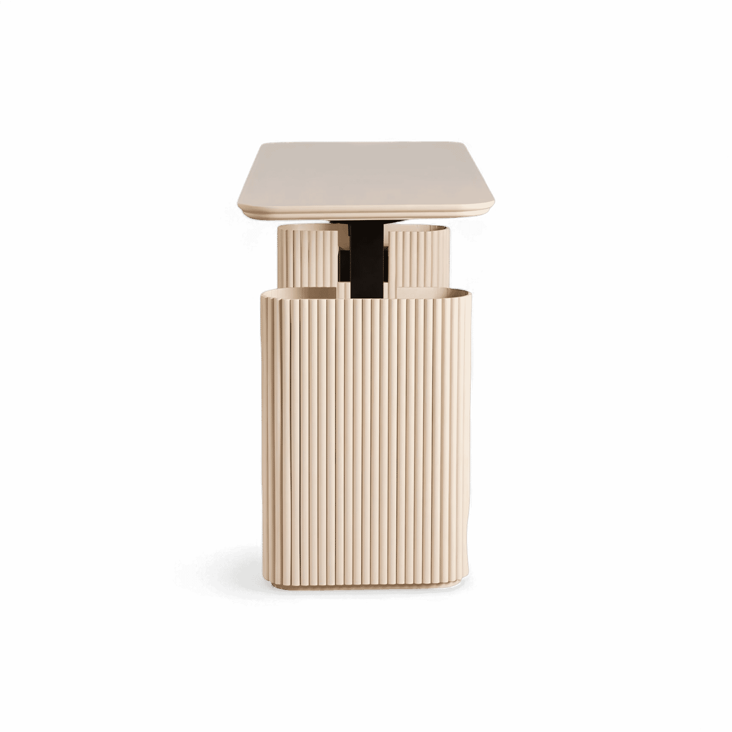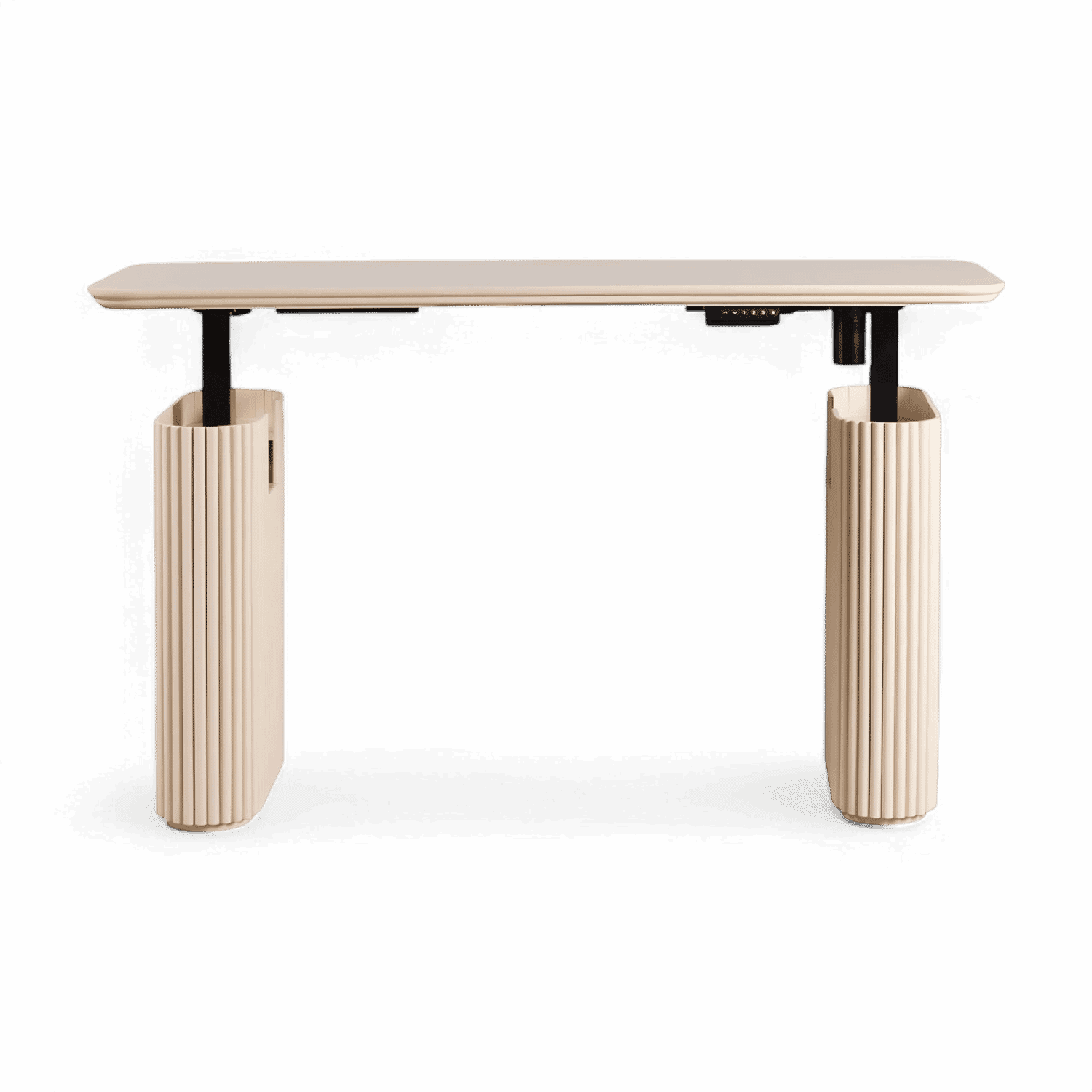 For added functionality, the Oxford Desk Alabaster is equipped with a power lift mechanism, allowing you to adjust its height effortlessly, ensuring comfort and ergonomic support for both sitting and standing work. The desk’s gracefully curved legs, adorned with a striking vertical wood slat design, adds texture and visual interest.