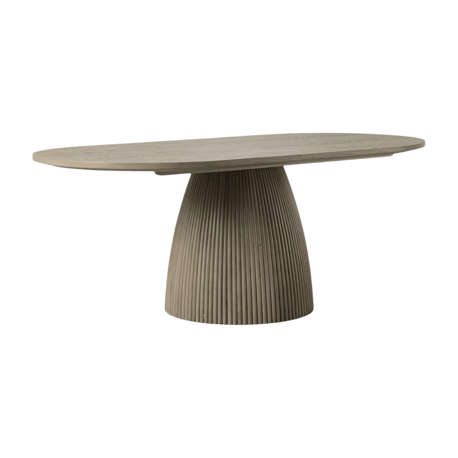 The Oxford Rectangular Dining Table Greige Oak is a sophisticated centerpiece for any dining space, combining timeless elegance with modern design. Its spacious rectangular tabletop features gently rounded edges, offering both style and a touch of softness to its bold silhouette. The base showcases an intriguing vertical wood slat design, adding depth and architectural interest to the table's profile.