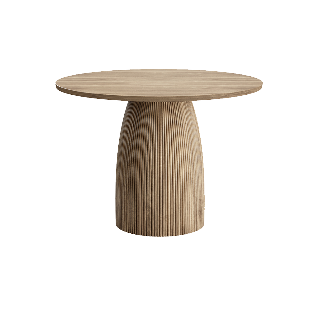 The Oxford XS Round Dining Table in Greige Oak embodies understated elegance with its compact 43-inch diameter top in a sophisticated greige oak finish, blending warm taupe undertones with the natural allure of oak grain for a versatile, modern-neutral vibe. Its sculptural pedestal base, adorned with finely reeded detailing, making it an ideal centerpiece for intimate gatherings or cozy dining nooks.?