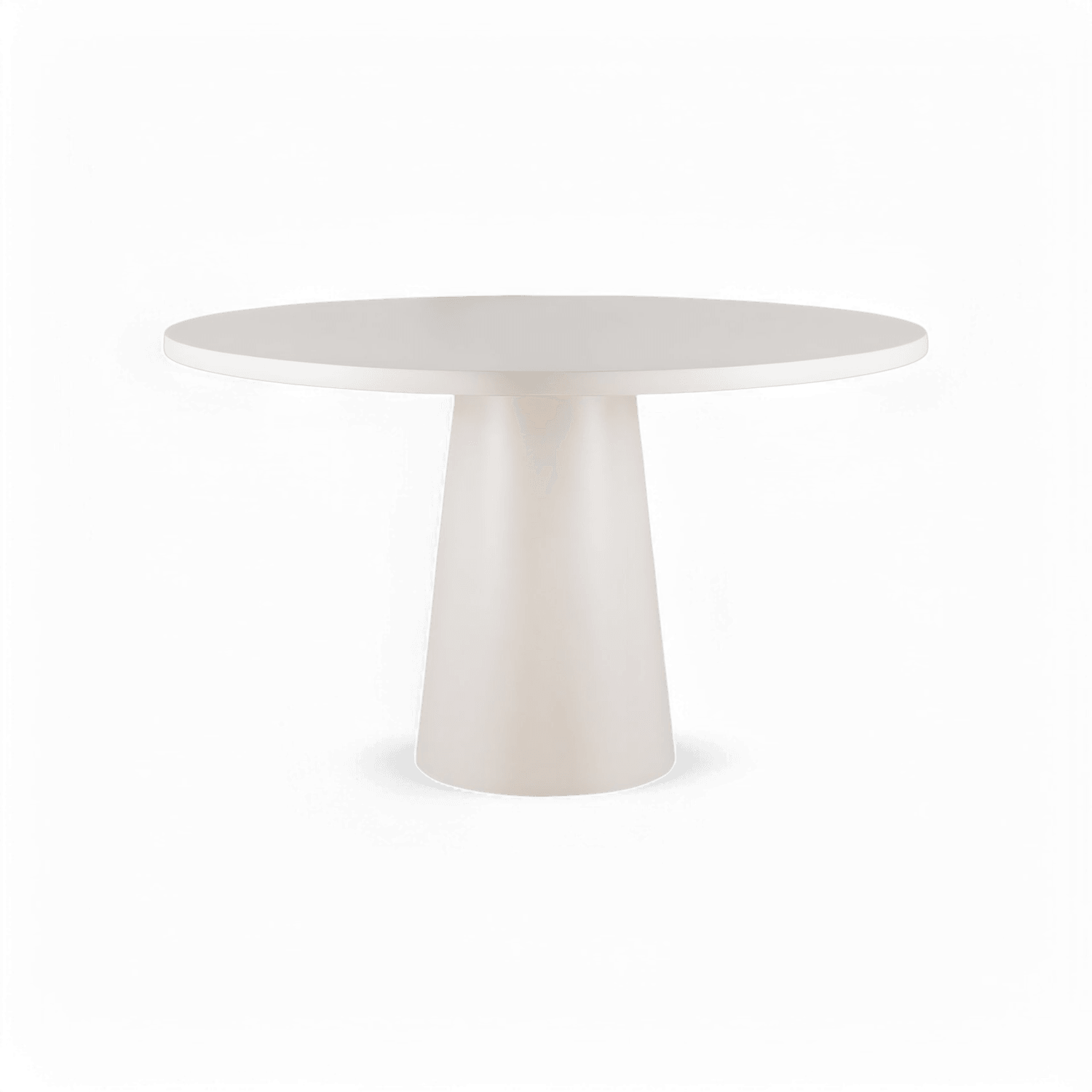 The Sable Dining Table in Alabaster is a statement of modern elegance, designed to bring refined sophistication to any dining space. Crafted from durable micro-cement, this round table showcases an alabaster-colored finish that exudes contemporary charm. With a generous 51-inch diameter, it comfortably accommodates gatherings both intimate and grand. The minimalist silhouette and organic texture create a striking balance of simplicity and style, making the Sable Dining Table a timeless centerpiece for your home.