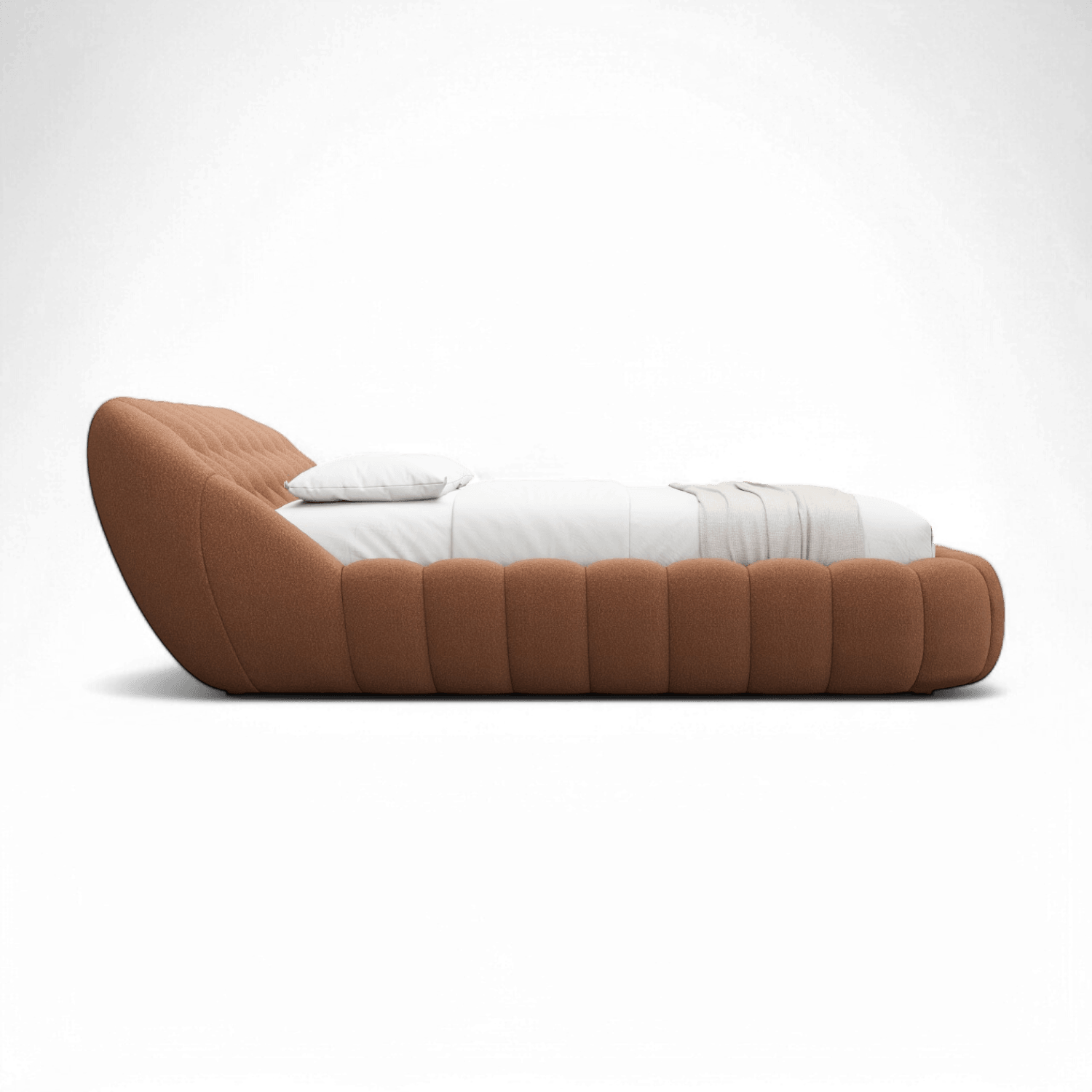 Transform your bedroom into a sanctuary of comfort and style with the Warby Bed in Terracotta Bouclé. This luxurious bed features a unique, sculptural design with rounded edges and a beautifully tufted texture that brings a soft yet striking presence to any space. The terracotta bouclé fabric adds an element of sophistication, creating an inviting, cloud-like retreat. Perfect for minimalist and modern interiors, the Warby Bed combines elegance with plush comfort, making it the ultimate centerpiece for your bedroom.