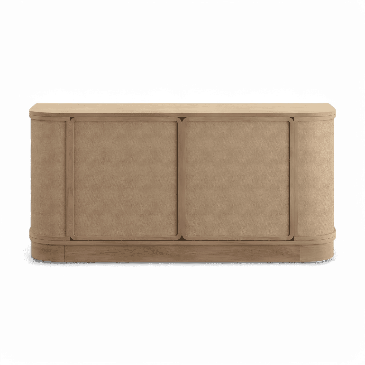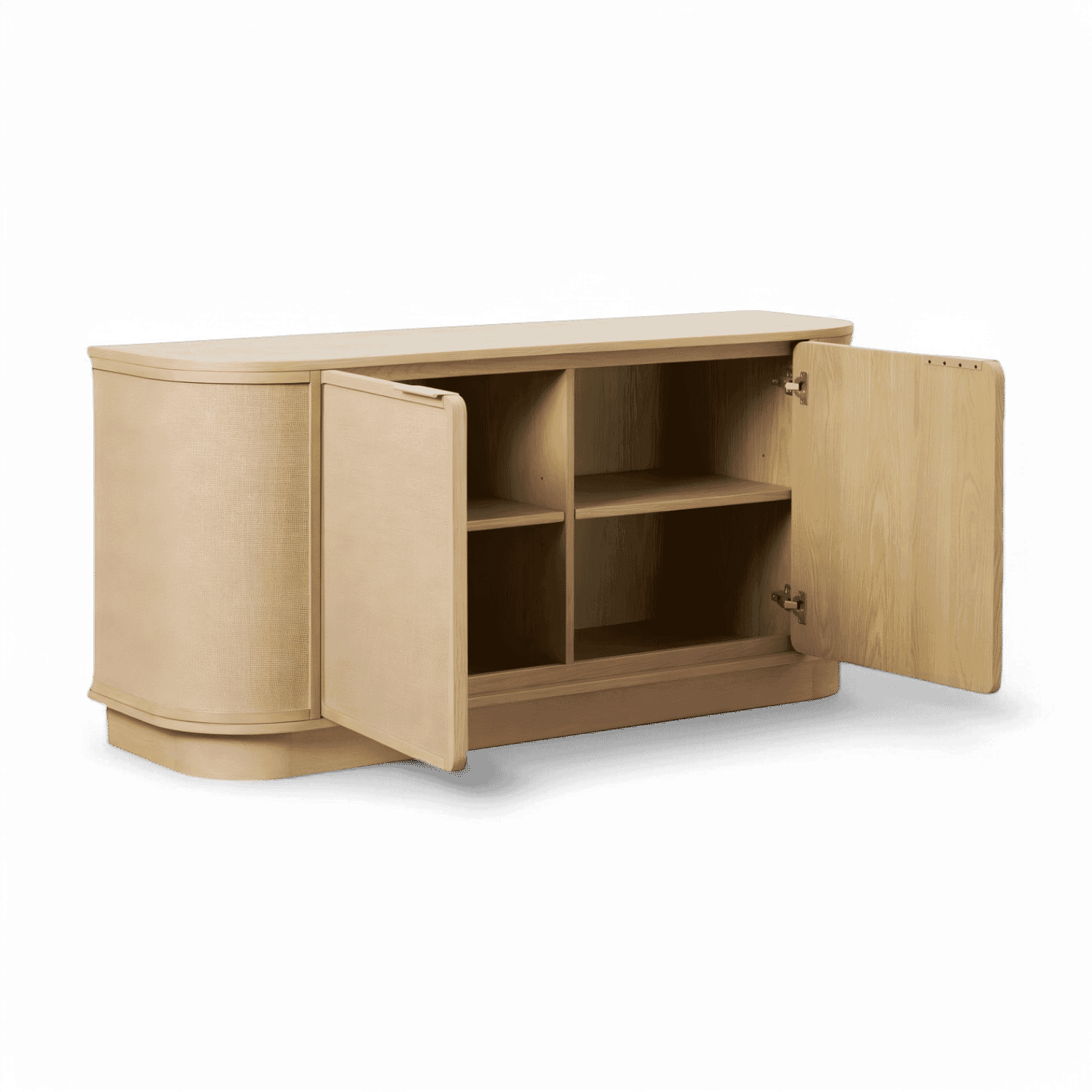 The Windsor Buffet is a perfect blend of elegance and functionality, designed to elevate any space with its sophisticated aesthetic. Crafted with a sleek greige oak veneer, it radiates natural warmth while maintaining a contemporary edge. The doors and sides are beautifully finished with woven cane, adding texture and a touch of organic charm to its design. The curved front sides soften its profile, creating a graceful silhouette that enhances any space.
