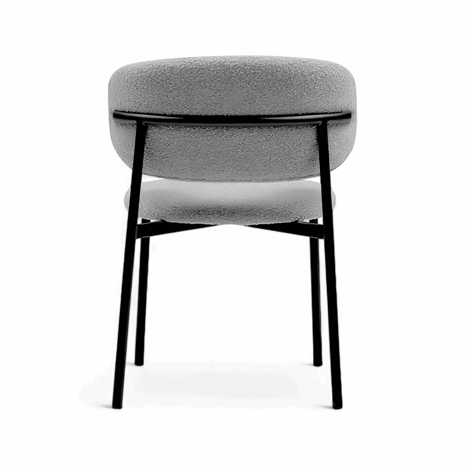 Upholstery: Boucle Fabric 85% Polyester 15% Acrylic | Padding: Foam | Legs: Matte Black Powder Coated Iron | Weight Capacity: 250 lbs